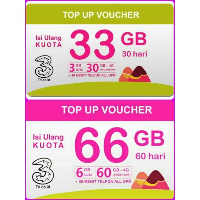 Kuota / Data / Paket Internet Tri Three / 3 33GB 66GB 30GB ... from cf.shopee.co.id Maybe you would like to learn more about one of these? Check spelling or type a new query. We did not find results for: